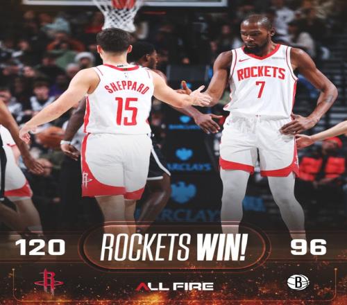 火箭轻取篮网迎4连胜阿门23分杜兰特22+5+11托马斯21分